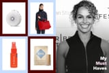 Even with a packed schedule, she finds time to care for herself in ways that feel good and sustainable. Lately, she’s been leaning into red light therapy (“I’ve been doing it for years – it helps with recovery and brightens my mood”) and fueling up with